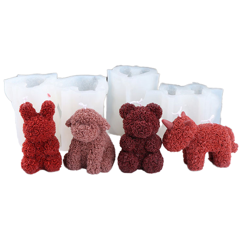Molde de Silicona de Oso en Oferta, Moldes de Silicona de Oso 3D, Moldes para Velas con Forma de Animales, Flores y Rosas para Decoración de Pasteles y Velas